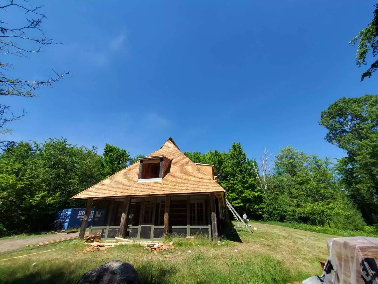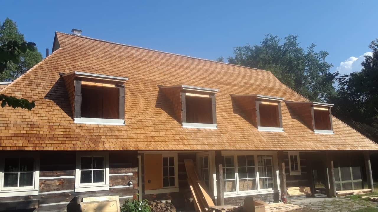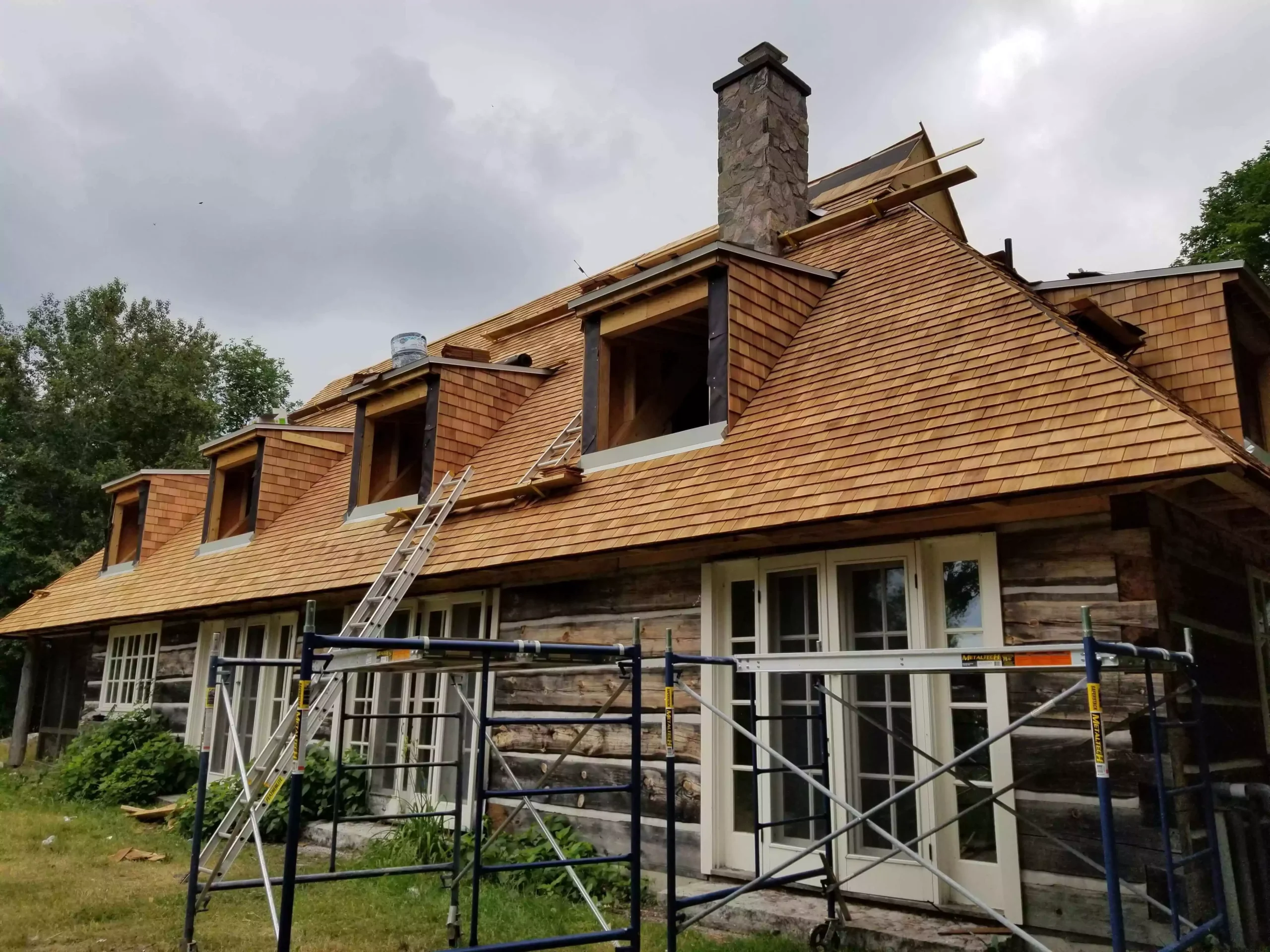 - Custom cedar shake roof installed to match original aesthetic and comply with Ontario Building Code.